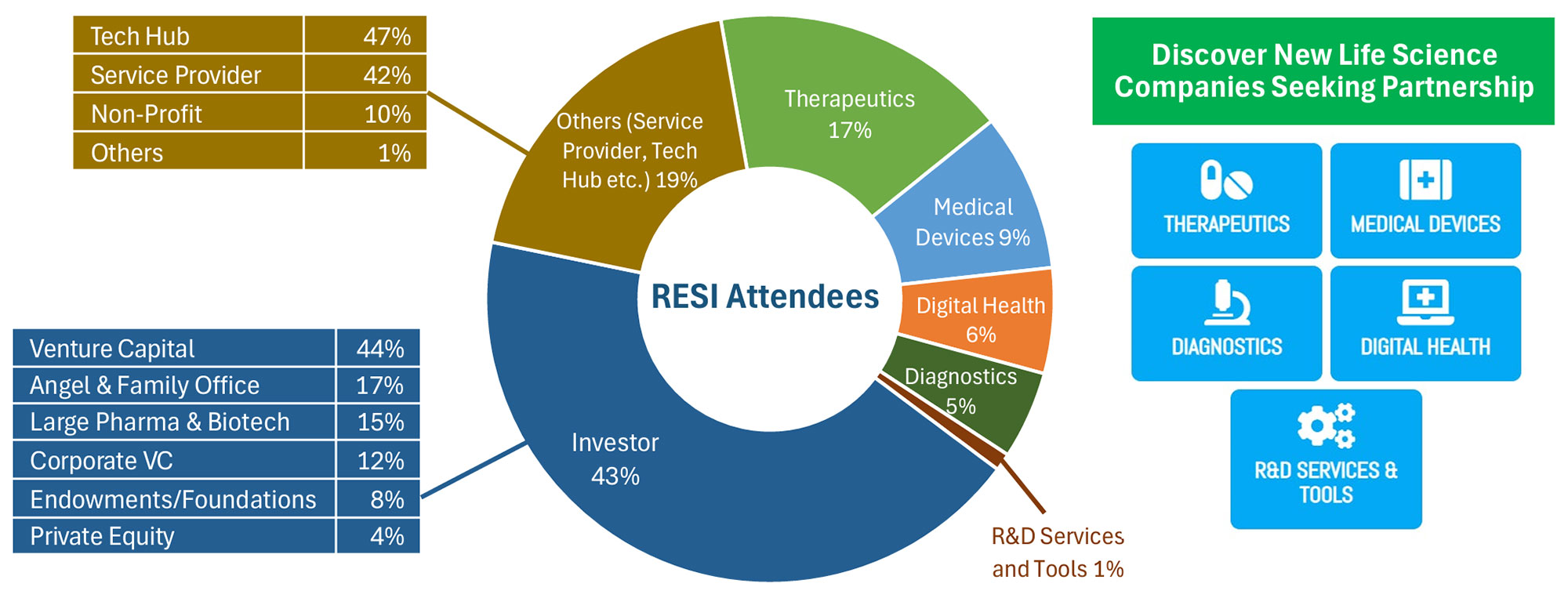 Life Science Nation (LSN) is the premier partnering experience in the early-stage investment ecosystem in healthcare. Investors, strategic partners, and companies representing all corners of the globe use LSN events to meet their partnership and fundraising goals. RESI sponsorship is the fast-track to reaching these goals. In addition to event access, sponsors receive unparalleled attention to detail from the LSN team. We share your goals and are committed to making your experience with us a success.
